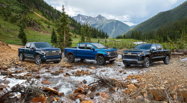 Shop New Chevrolet cars, trucks and SUVs. The new Chevrolet Silverado 1500 and GMC Sierra 1500 are top truck options, dominating the popular and competitive full-sized pickup segment. Offered in a wide range of cab styles, engine levels, bed sizes, and drivetrains, there's bound to be a Chevrolet or GMC pickup that works best for your towing and hauling needs around Bloomington or Indianapolis. Go with a Silverado 2500HD or another HD setup for commercial-grade trailering and payload ratings or choose a smaller midsized Chevrolet Colorado or GMC Canyon for lighter duties or off-road adventures in the Hoosier National Forest.